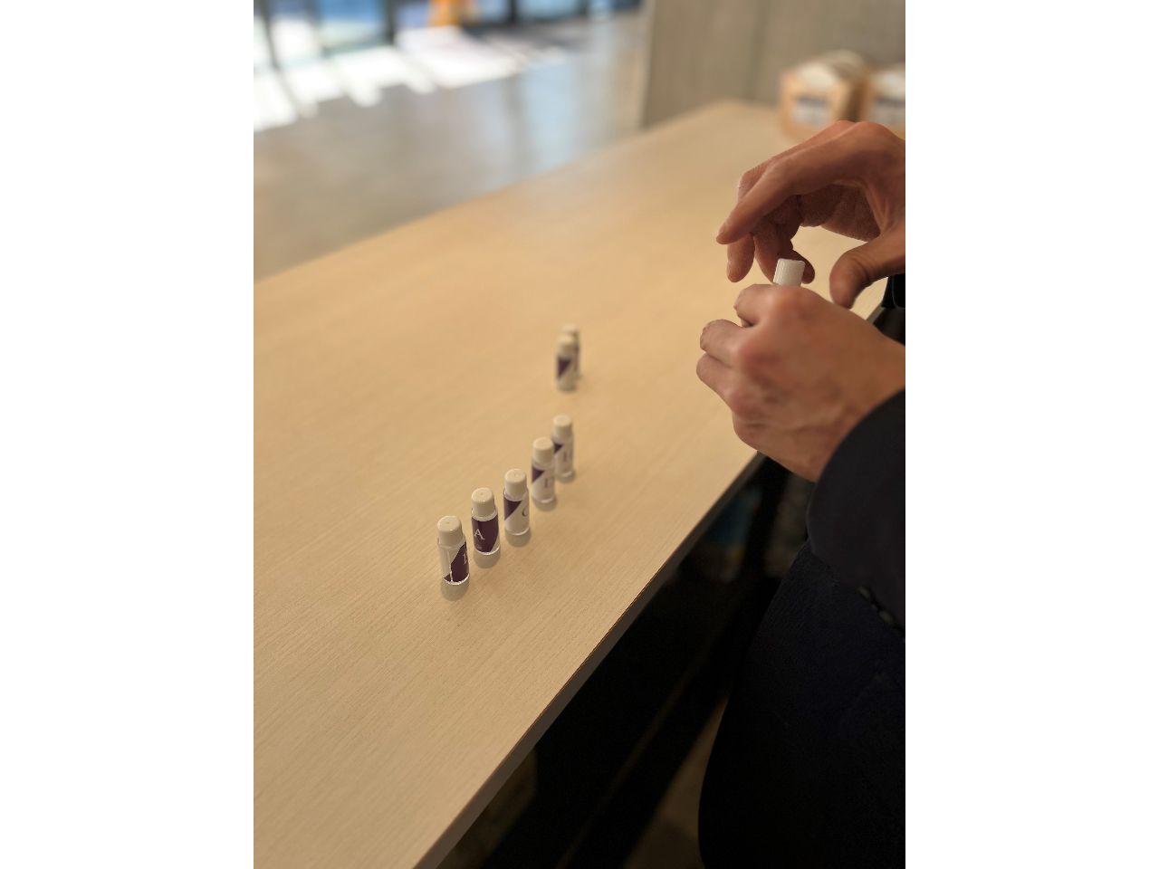 8本のアロマオイルの匂いを嗅いでいただき好きな順番に並べるだけで