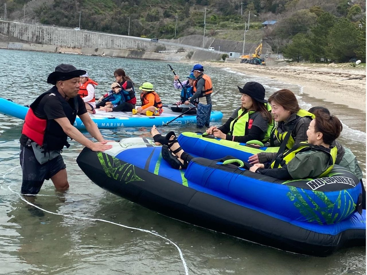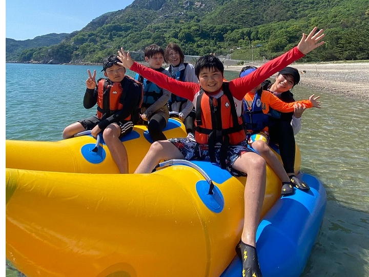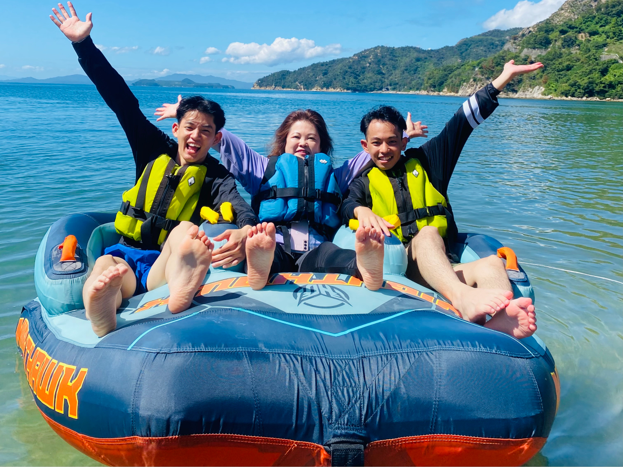 ・パドリングの後はバナナボートやマーブルトーイングチューブで蒲刈島の海を満喫!