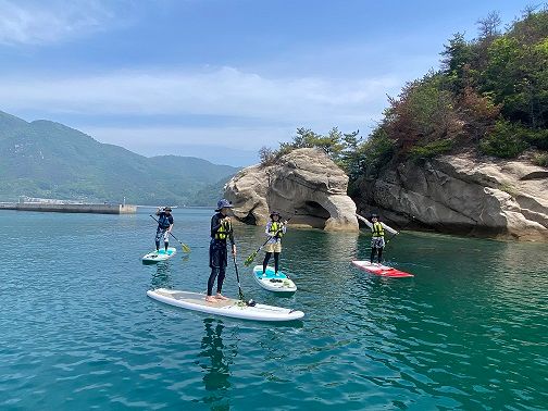 一枚の板(ボード)に立ってパドルを持ち蒲刈ブルーの海でゆったりとクルージングしましょう♪