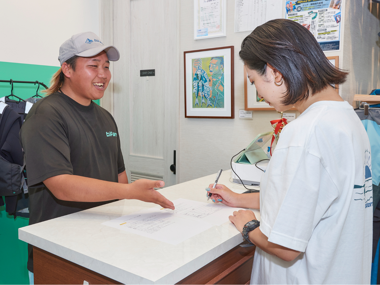 更衣室の用意もありますが、狭いため最初から着用してお越しいただくとスムーズです。