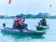 富士山をバックに、カヤックに載りながら釣りの体験を行うプランです。
