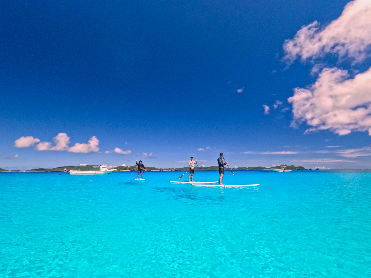 ケラマブルーの海でSUP体験・レッスン♪ 女性・カップル・ファミリーオススメ