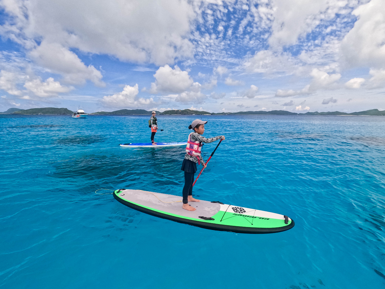 ケラマブルーの海でSUP体験・レッスン♪ 女性・カップル・ファミリーオススメ