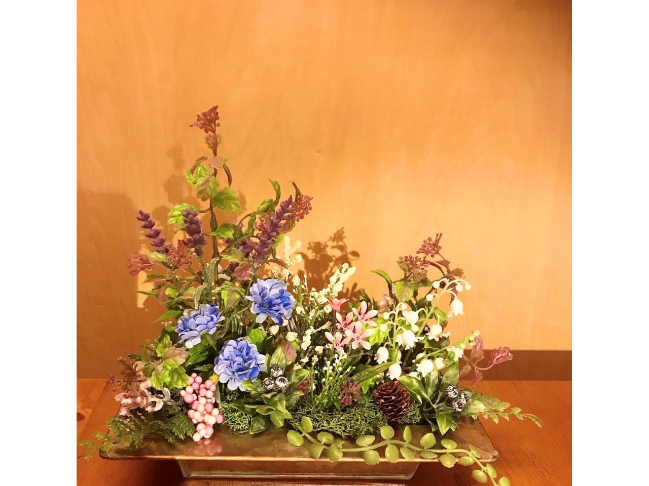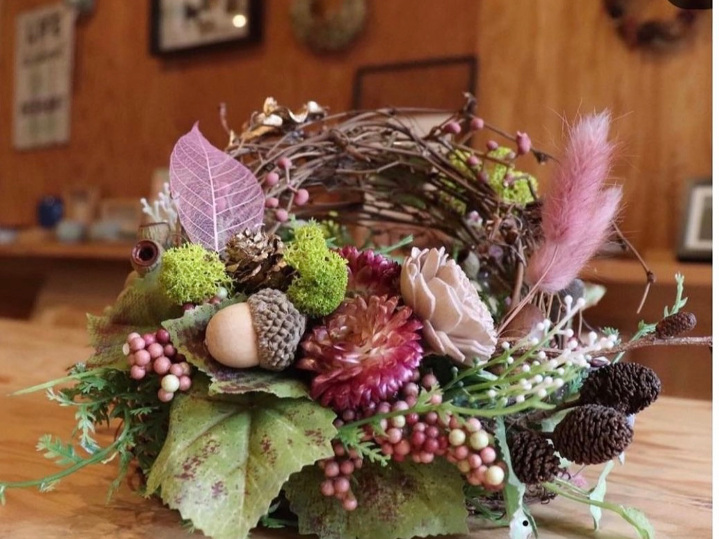 季節に合わせたアーティフィシャルフラワー(本物に近いクオリティの高い造花)でアレンジやインテリア作品を作る体験です