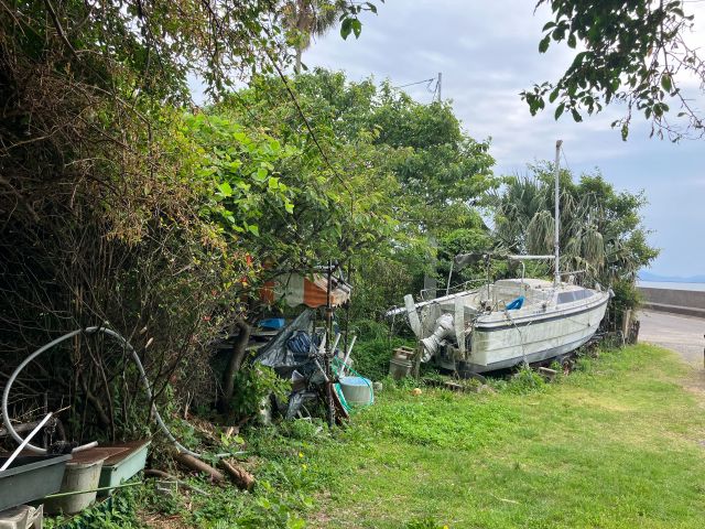 大村湾まで10m。西海橋と針尾無線塔が見える 標高2m。緑地丘BBQ