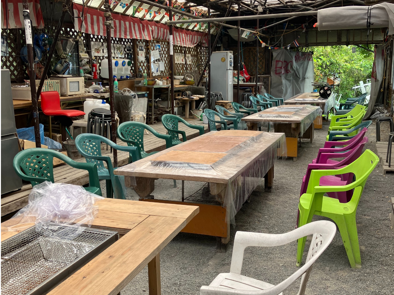 | 料金に含まれるもの | BBQ場 透明屋根(冬は温室)付き、防風かべ付き建屋 木のデッキ グリル付きデスク、イス(丸椅子、プラスチックスタック)緑地丘展望台一帯。別料金BBQグリル10人用4000円 | 1予約あたりの予約可能人数 | 2人〜60人 |