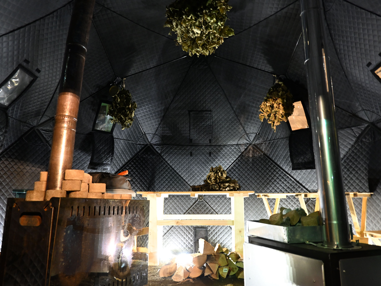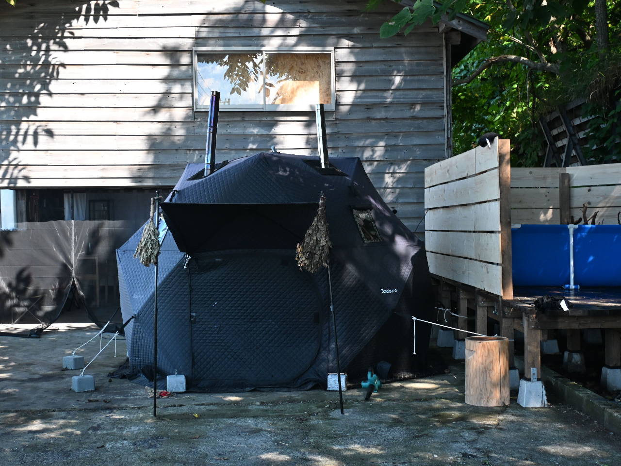 テントサウナはヴィヒタの香りに包まれて、新体験ができます! 他店にはない、魅力的な香りに包まれたサウナです。
