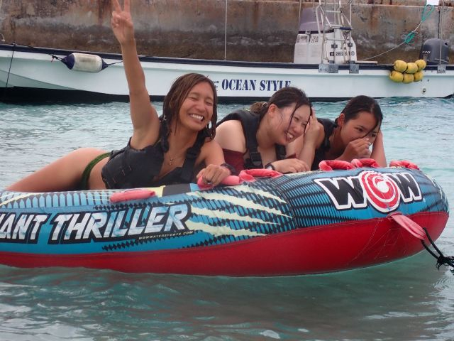 ・海遊びの定番「バナナボート」やソファー型の「ビッグマーブル」、スリル満点の「ジャイアントスリラー」の2種から選択して遊びつくせ♪