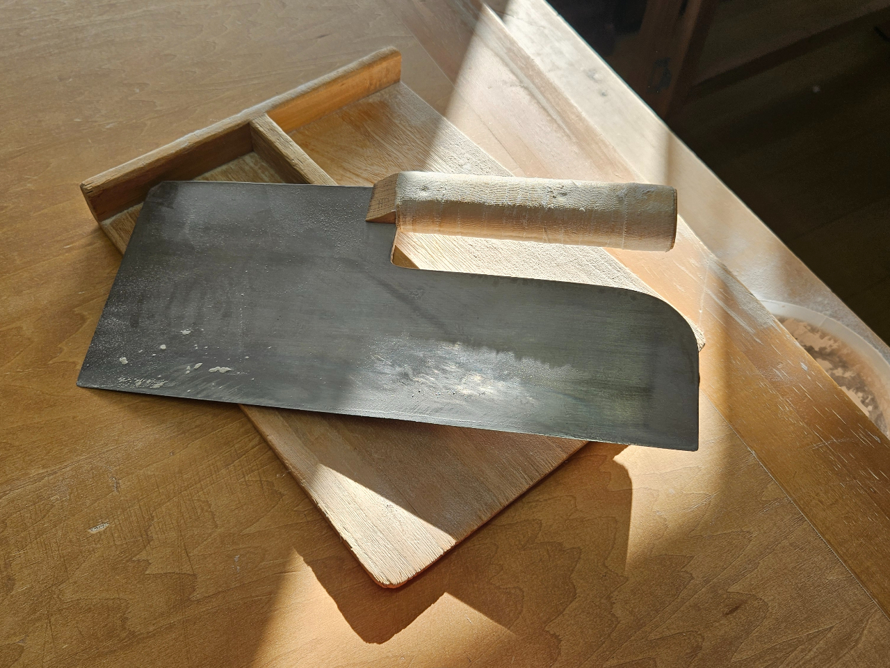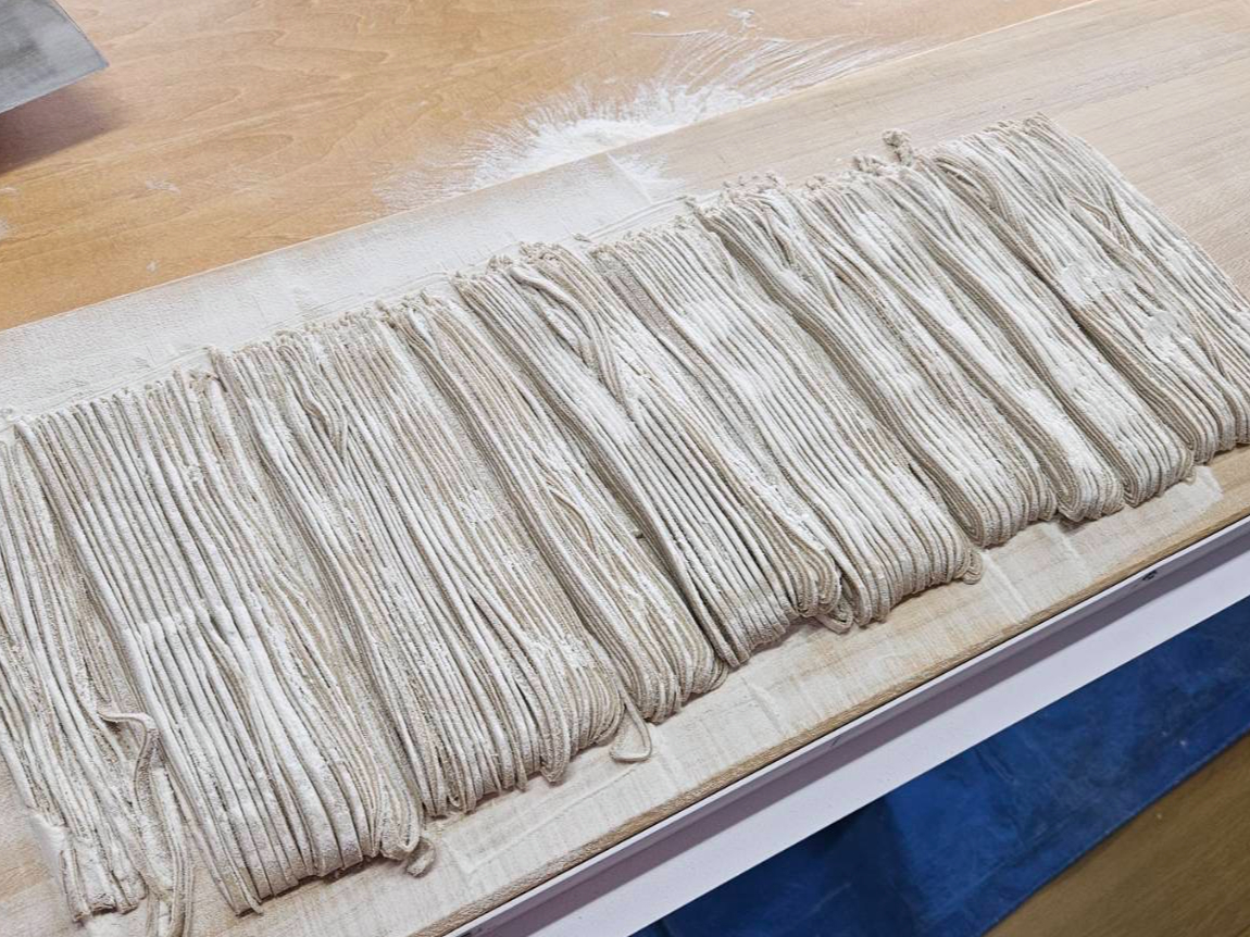大きく広げたら次は切る工程へ。細さを変えることでオリジナルのそばが出来ます!