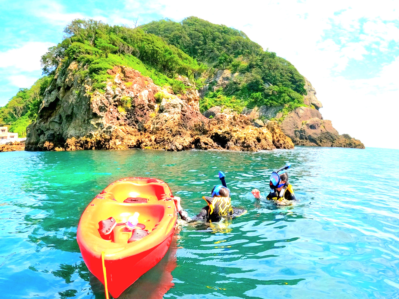 伊豆下田の穏やかな外浦海岸でインストラクターが帯同しレクチャーと安全にガイドするカヤック体験&シュノーケリング120分コース!