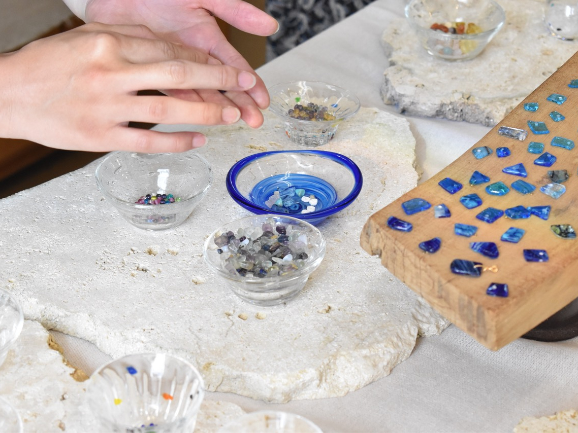琉球ガラスのカケラを使用したアクセサリー体験ができます。
