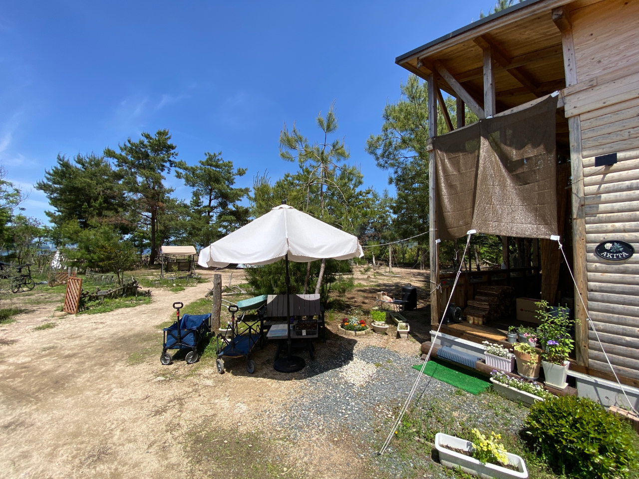 瀬戸内海国立公園の自然にあふれた島:江田島で、高台から見渡す海、夜は広島湾とフェリーの醸し出す美しい夜景を眺めながら、コンパクトなガーデン風の当地でキャンプを満喫。オーナー在住で夜も安心!