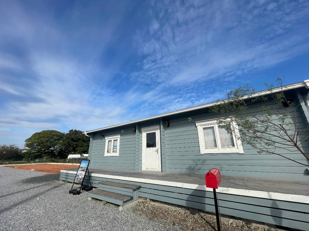 【受付管理棟ログハウス】焚き火で炙って食べられるマルシェプレート・アイスクリーム・コーラなどの飲み物を販売しています。飲料自動販売機もあります。