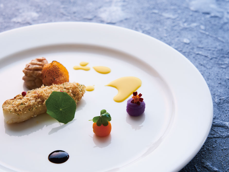 ■地元・和歌山の息吹が薫る高級食材や新鮮野菜をひと皿に。料理人の個性溢れる創造ディナーをお楽しみください。