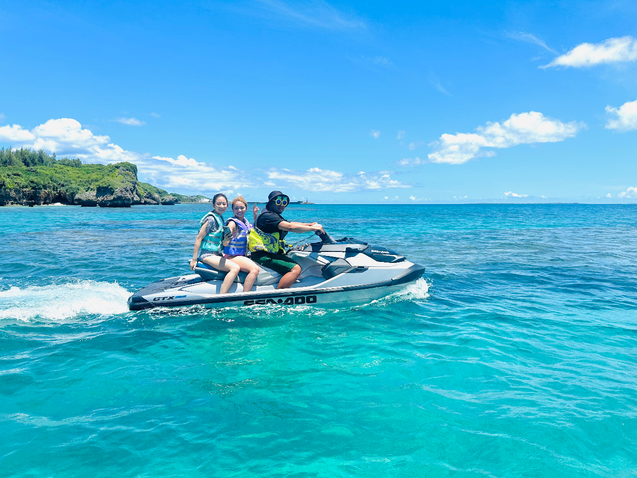 最大2名まで、ジェットスキーの後ろに乗って頂き、宮古島の海を爽快に走ります!