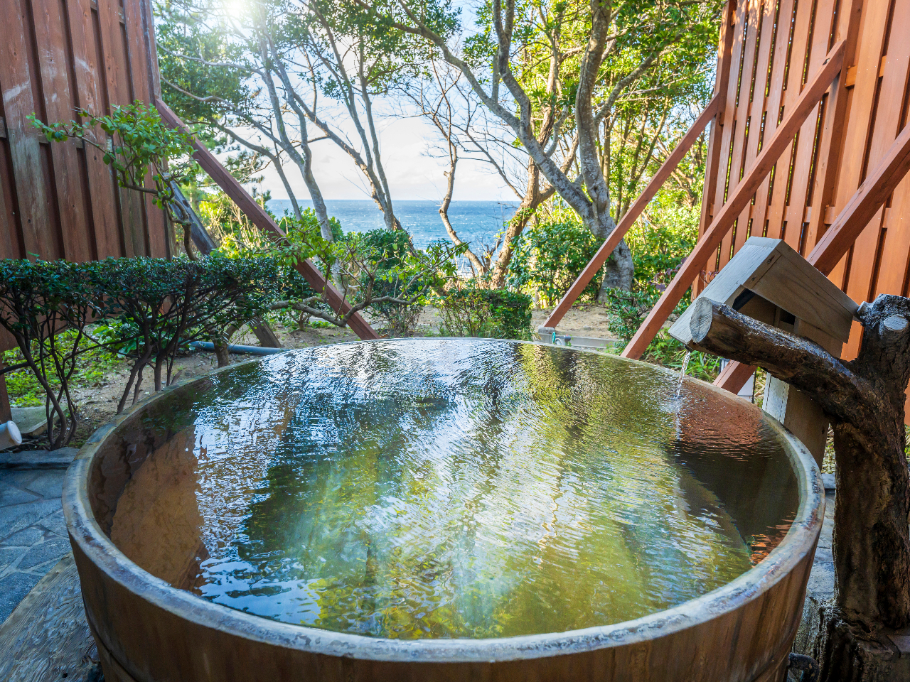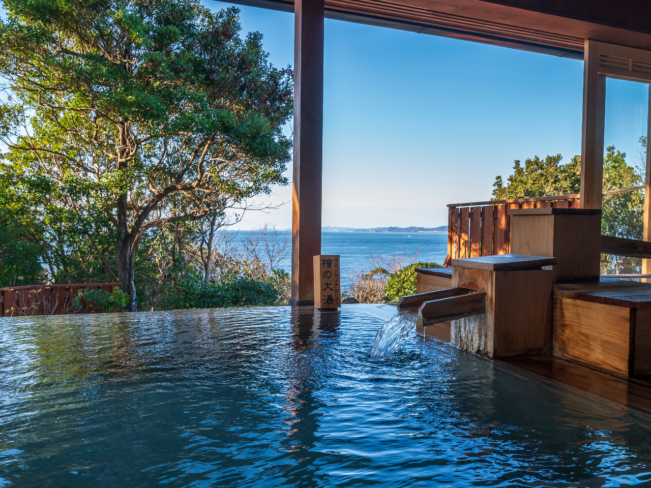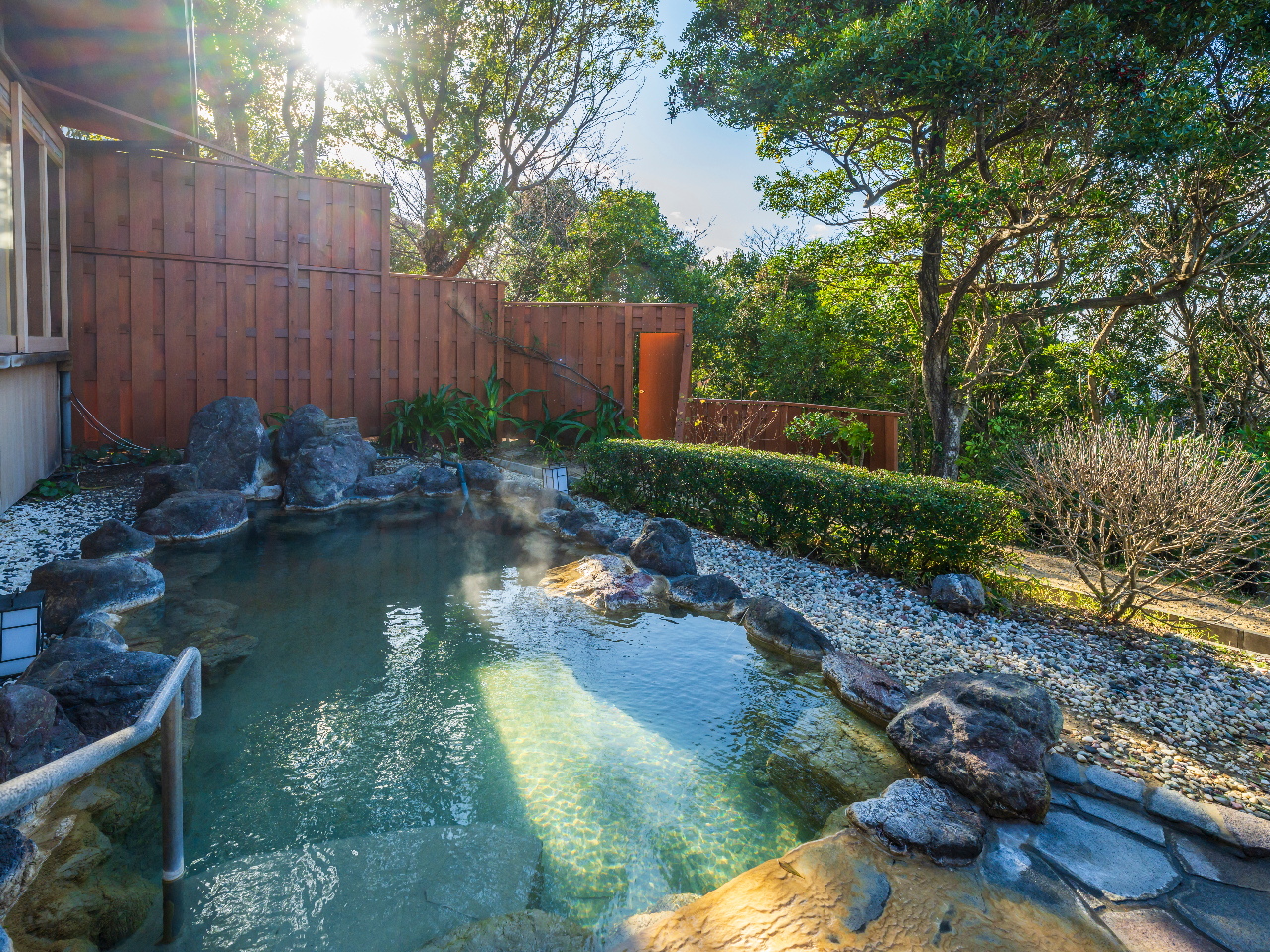 内湯と露天風呂を備えた大湯屋と2種類の趣き異なる貸切風呂