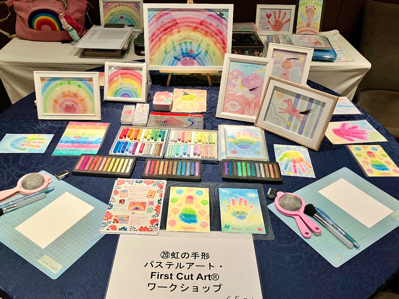 【兵庫県神戸市】【虹の手形パステルアートとFirst Cut-Art体験】2Lサイズ額付き〜女性・ファミリーにおススメ♪