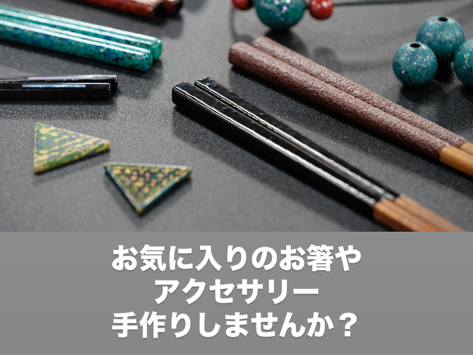 現地にお越しいただくとお箸以外にアクセサリーパーツもお選びいただけます