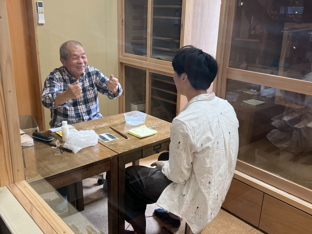 この体験では、16代目・秦吉兵衛と8代目・鈴木勘右衛門による漆職人ユニット『うるしーじーず』が、やさしく丁寧に指導します。伝統工芸に初めてふれる方でも安心してご参加いただけます。