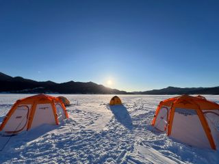 大雪山国立公園に囲まれた絶景の湖上で臨む、楽しくて美味しいワカサギ釣り体験をぜひ!わかさぎ釣り