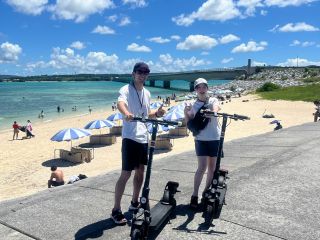 【古宇利島のおとなり屋我地島発!】公道OK☆電動スクーター(キックボード)で島めぐり1デイ(8時間)プラン☆16歳以上なら免許不要♪