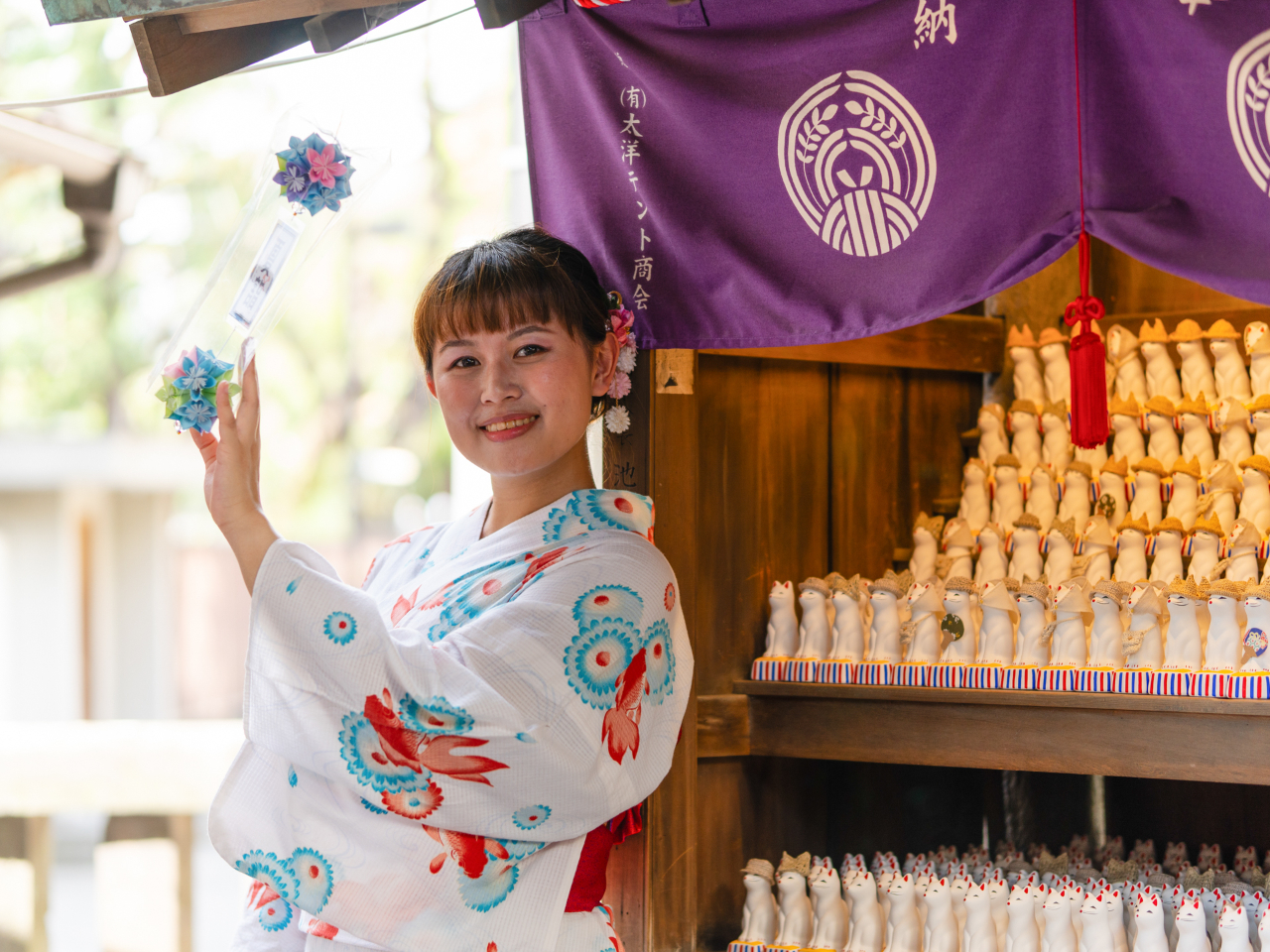 撮影は主に日本人がおこないます。浴衣のアップグレードやアクセサリーの追加料金はありません。オブションになることが多い帯周りの帯締めも料金に含まれます。お客様のお体に合わせた補正を行います。