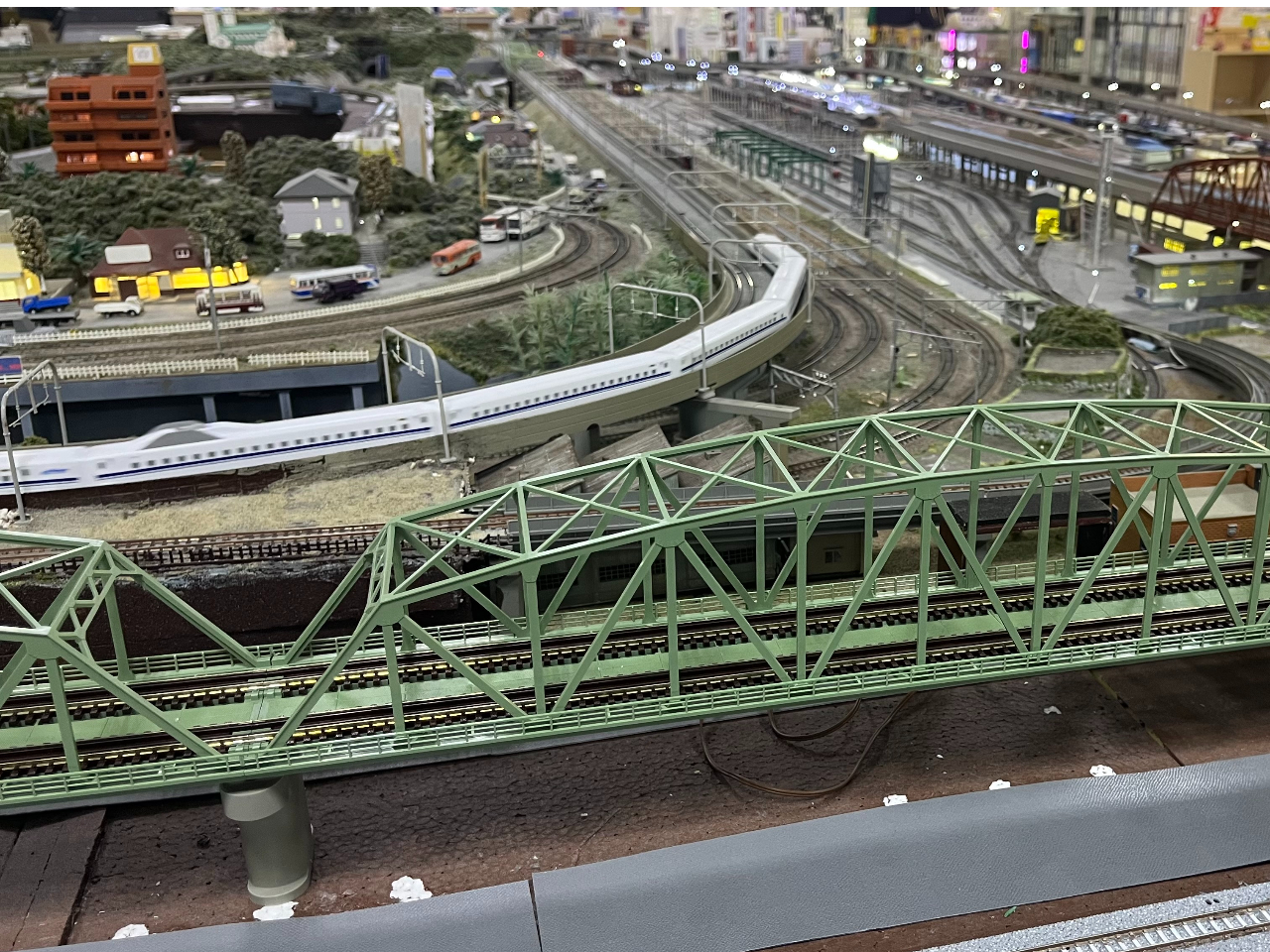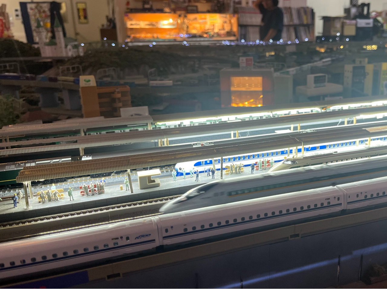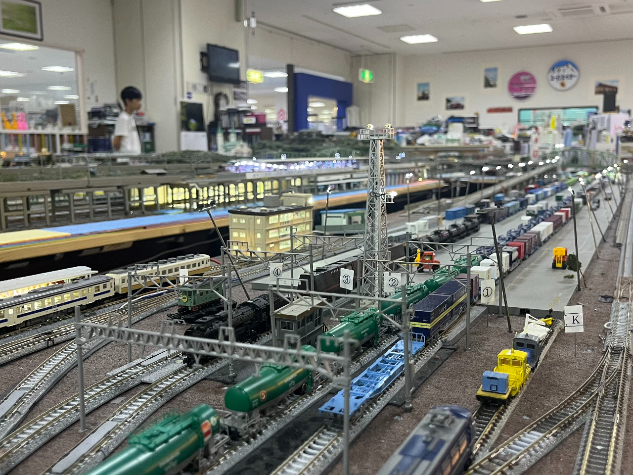 お好きな鉄道模型を、大きなジオラマの線路に走らせて楽しむことができます。