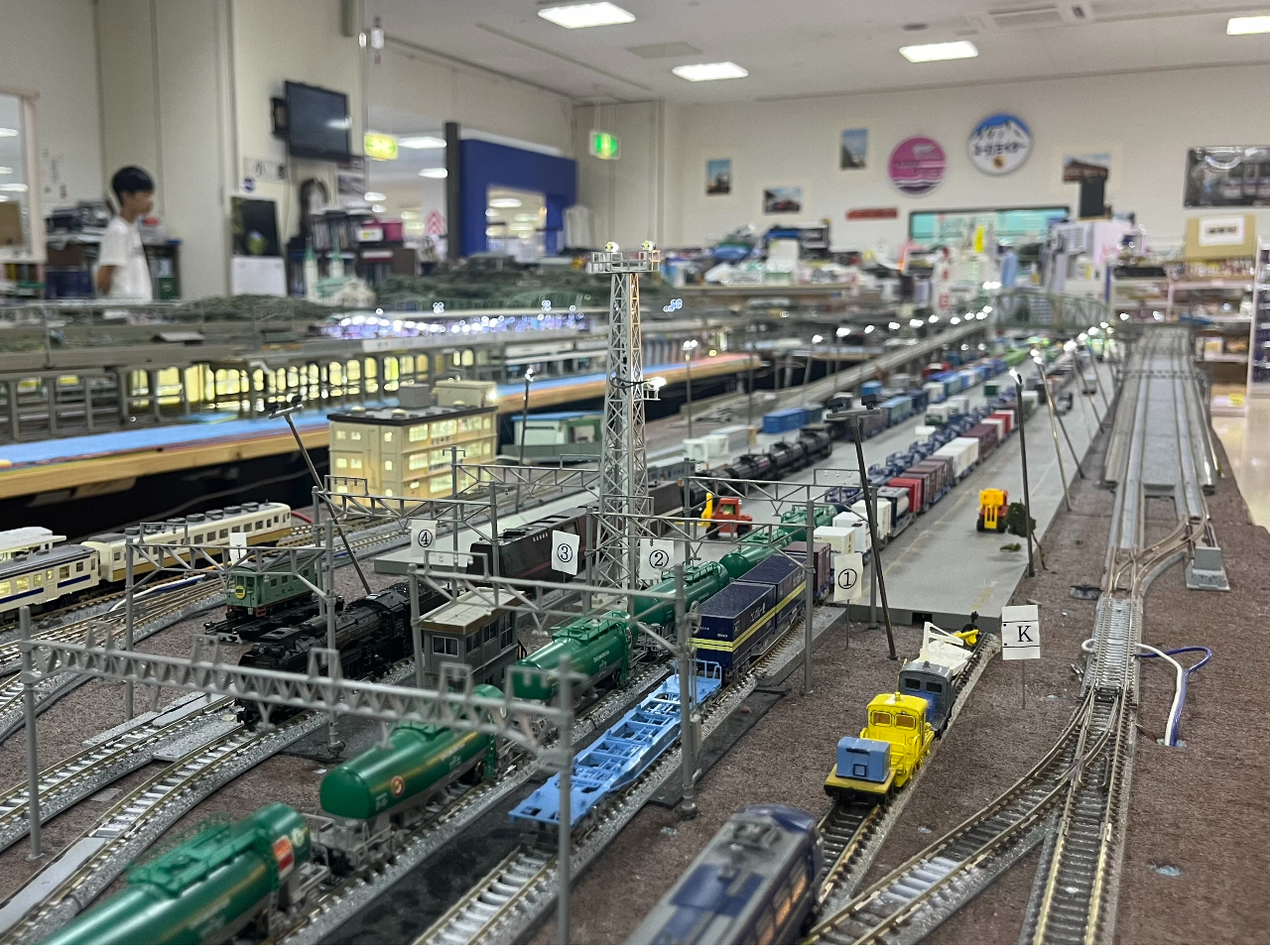 お好きな鉄道模型を、大きなジオラマの線路に走らせて楽しむことができます♪