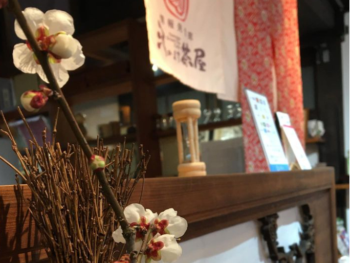 築130年の商家を改装した店内で山鹿茶、名物の和菓子も楽しめます♪町めぐり・食べ歩き