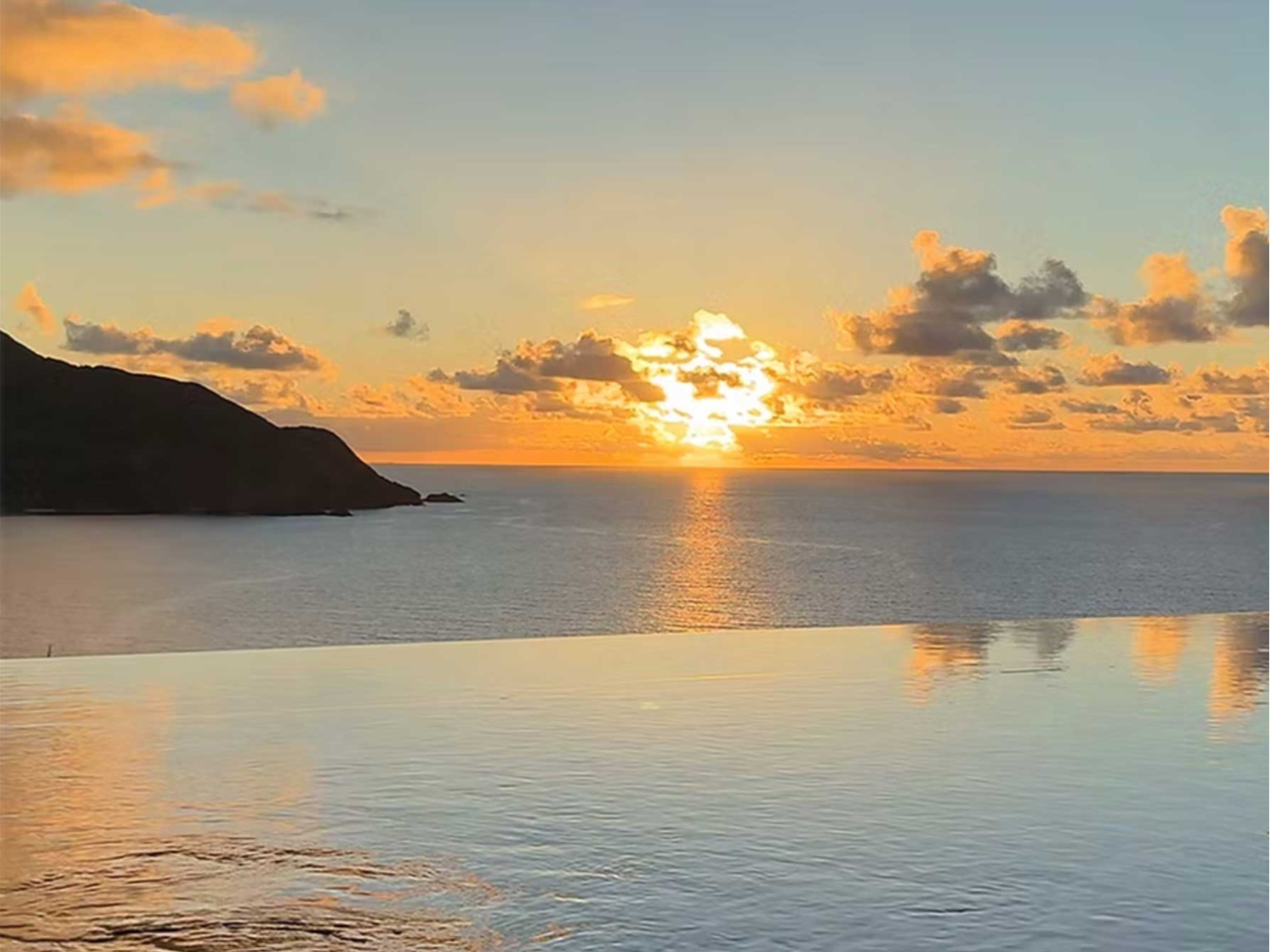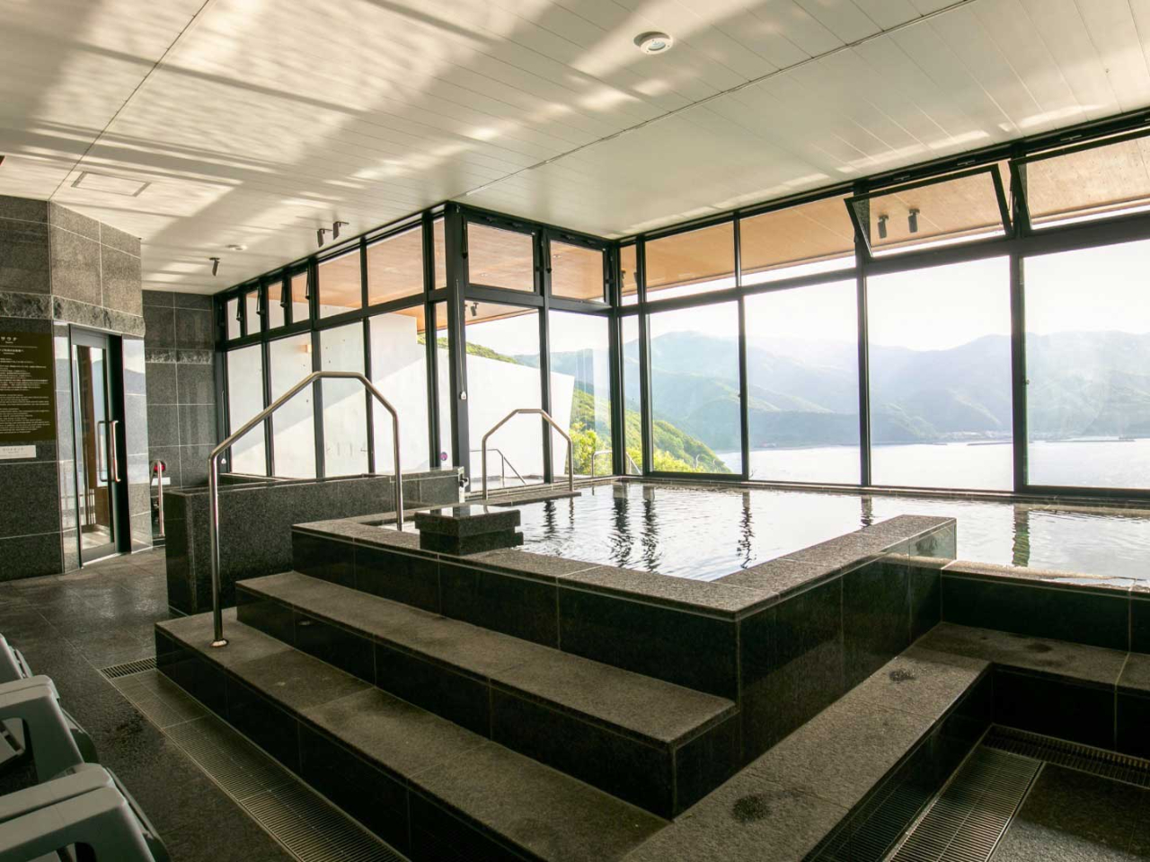 露天風呂では大きく切り開かれた屋根と、水平線にこぼれる水面が、ありのままの自然の魅力を最大限に引き立て、まるで一枚の美しいキャンバスに。