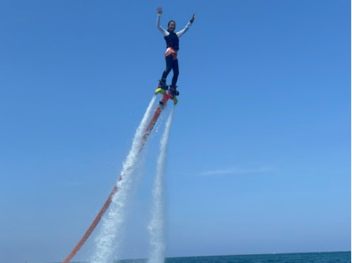フライボードとは噴射装置を足に装着し水圧で空を飛ぶアクティビティ!