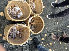 大自然のなかで食べられそうなキノコを採って、先生に選別してもらいました。