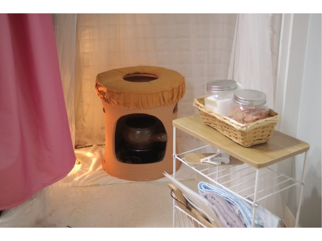 さらに、当サロンでは高い効果が期待できる「黄土椅子」を使用しており、一般的なよもぎ蒸しよりも体を効率的に温めます。