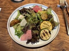 ランチのコースは契約農家の野菜サラダも付くなどお野菜多め、メインの豚のグリル料理も美味しかったです。