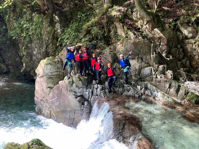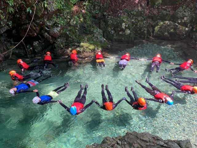 | 料金に含まれるもの | ガイド料、保険料、装備一式(ヘルメット、ライフジャケット、ウェットスーツ上下、沢シューズ)、昼食、消費税 | 1予約あたりの予約可能人数 | 1人〜8人 |