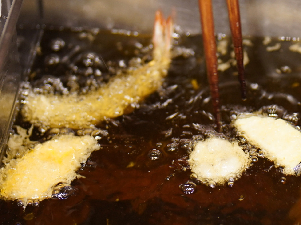 ステーキ、天ぷら、焼きたて揚げたてで、