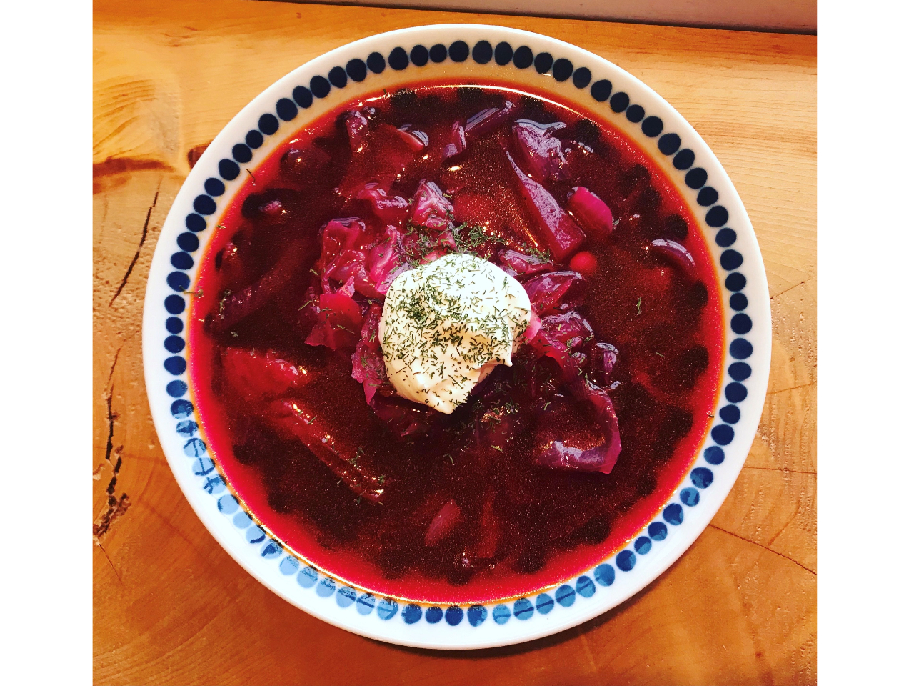 焼きたてのピロシキとボルシチと合わせてカフェ「まるたま小屋」で召し上がって頂きます。