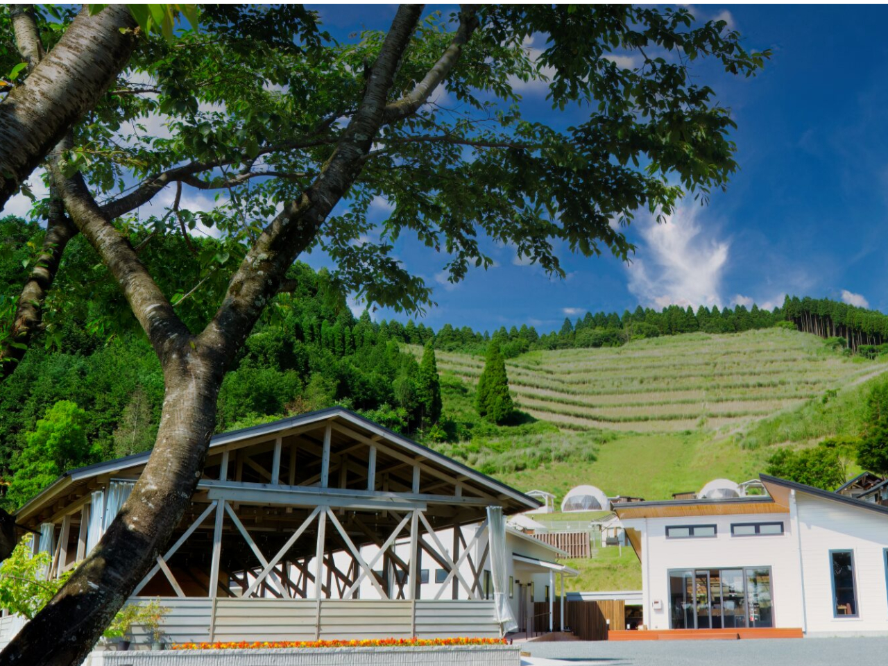 左手前【チャコールダイニング カルデラ】 左奥【龍神温泉 青蜂の湯】 右手【管理棟 受付】