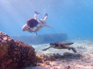 ウミガメと一緒に泳ぎ、写真を撮りましょう!!