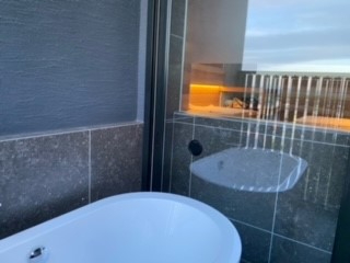 屋外の水風呂浴槽はお湯を溜めて露天風呂にすることも!