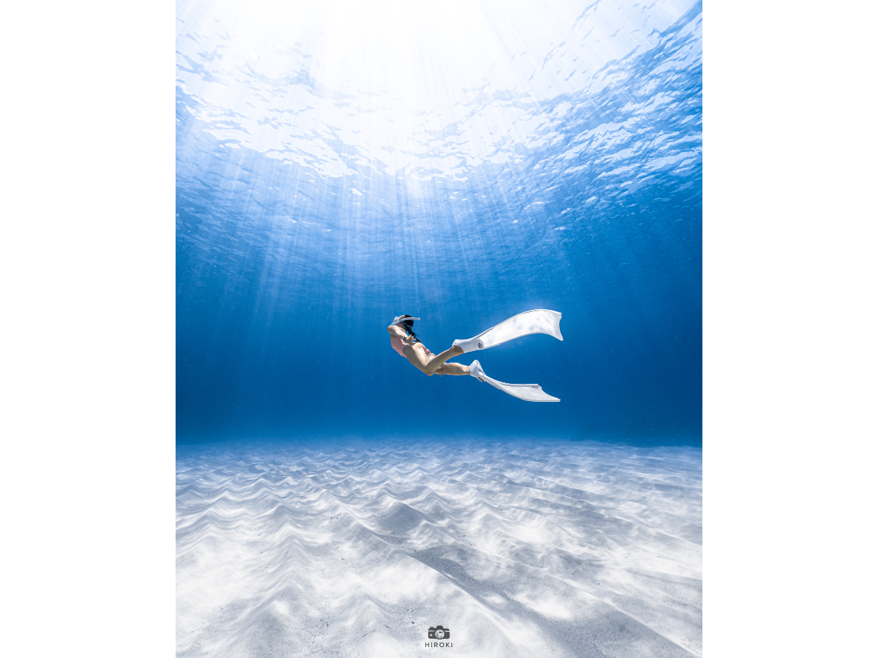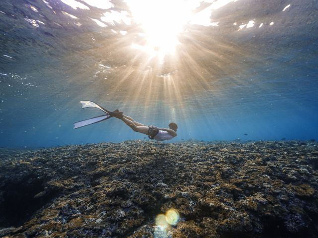 シュノーケルと違い自由に海の中を泳ぐことができるので、