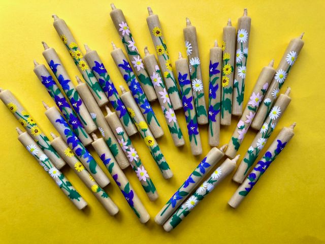 愛知県岡崎市にある松井本和蝋燭工房の伝統工芸品和ろうそくに、アクリル絵の具でお好きな絵を描いていただけます。所要時間は30-60分です。予めお好きなデザインを考えてきてくださるとよりスムーズです。