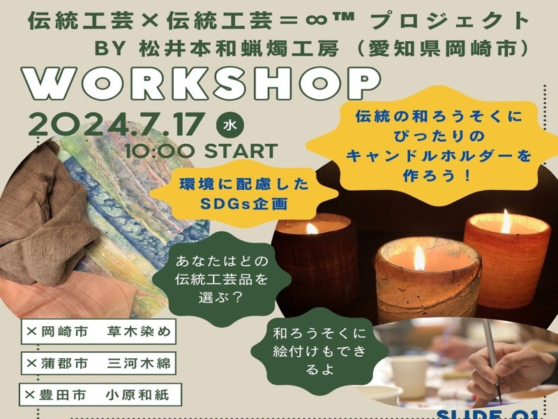 【愛知・岡崎市】最高級和ろうそくにぴったりのキャンドルホルダー作り体験&絵付け体験 蝋燭物語(R)コース 伝統工芸品の生地を使おう!はじめての方歓迎!サミット贈答品選出の老舗【松井本和蝋燭工房】