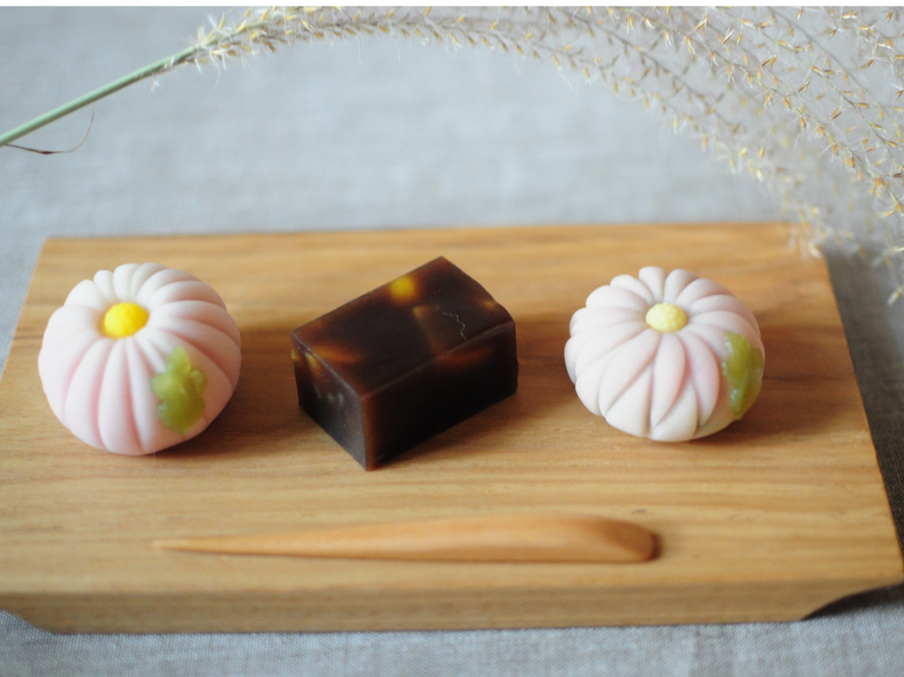 季節の和菓子を3個、お作り頂きます。作品が出来ましたらお抹茶と講師作の和菓子をお召し上がりください。