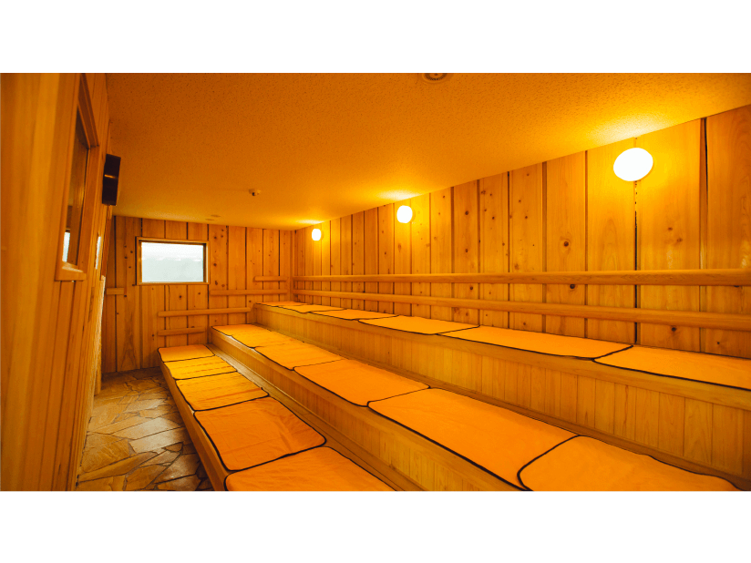 【洋風浴場】遠赤外線サウナ(洋風側) 室温75度前後。湿度をコントロールすることで、 心地よく発汗できます。