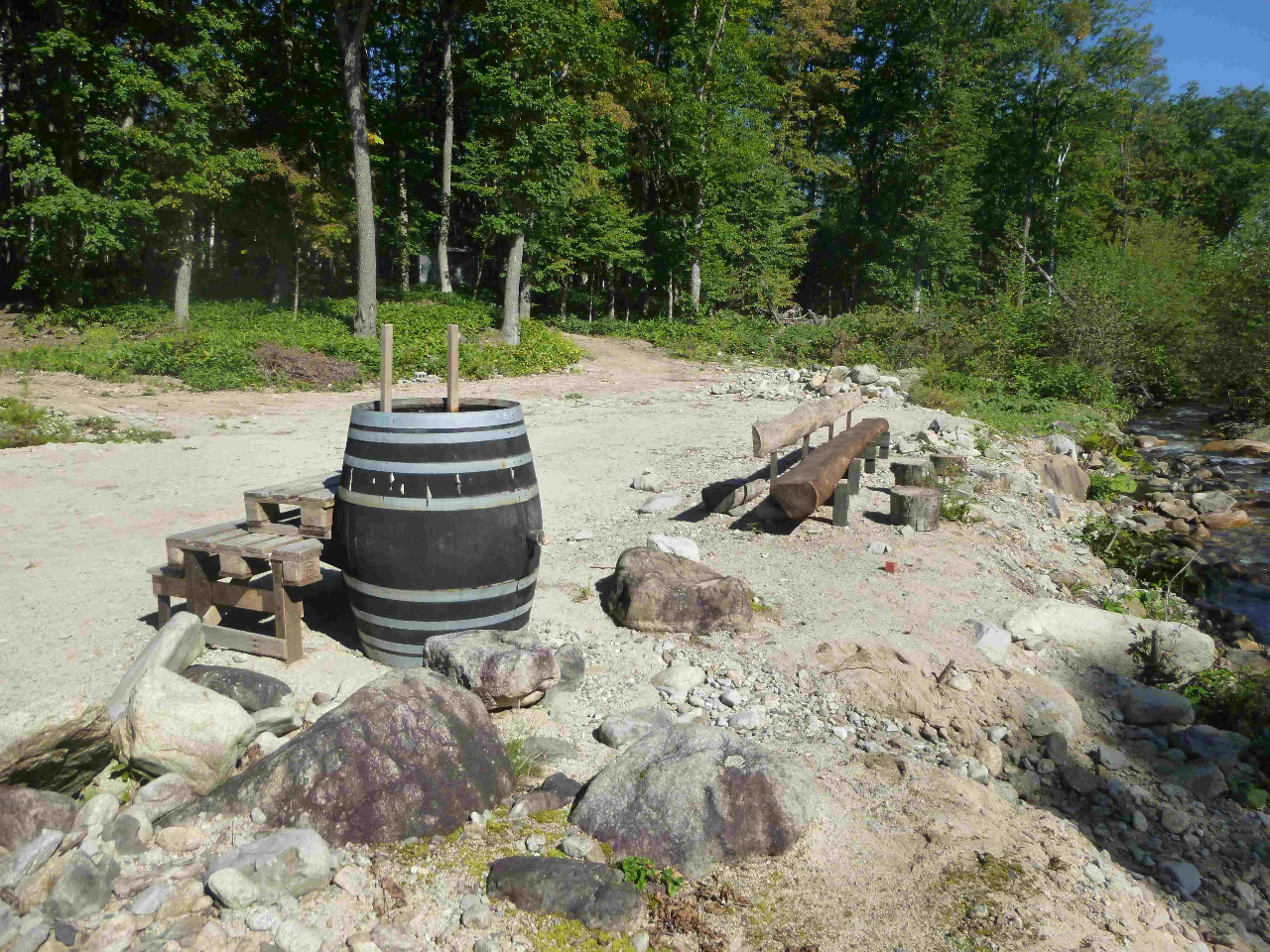 お客様だけのためのサウナルームをご用意しております(相部屋はございません)。2時間のサウナを川の景色を楽しみながらお過ごしいただけます。(夏季は川で水浴びやワイン樽でのクールダウンが楽しめます)