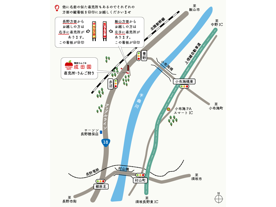 当りんご園は、長野県北部の千曲川のほとり、通称アップルライン沿いにあります。 善光寺平の盆地特有の昼夜の気温差と、肥沃な土地で育ったりんごは、実が締まり糖度の高さが自慢です。