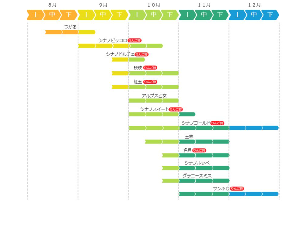 定番品種や長野県オリジナルの品種など、収穫を迎えた様々なりんごを味わえます♪