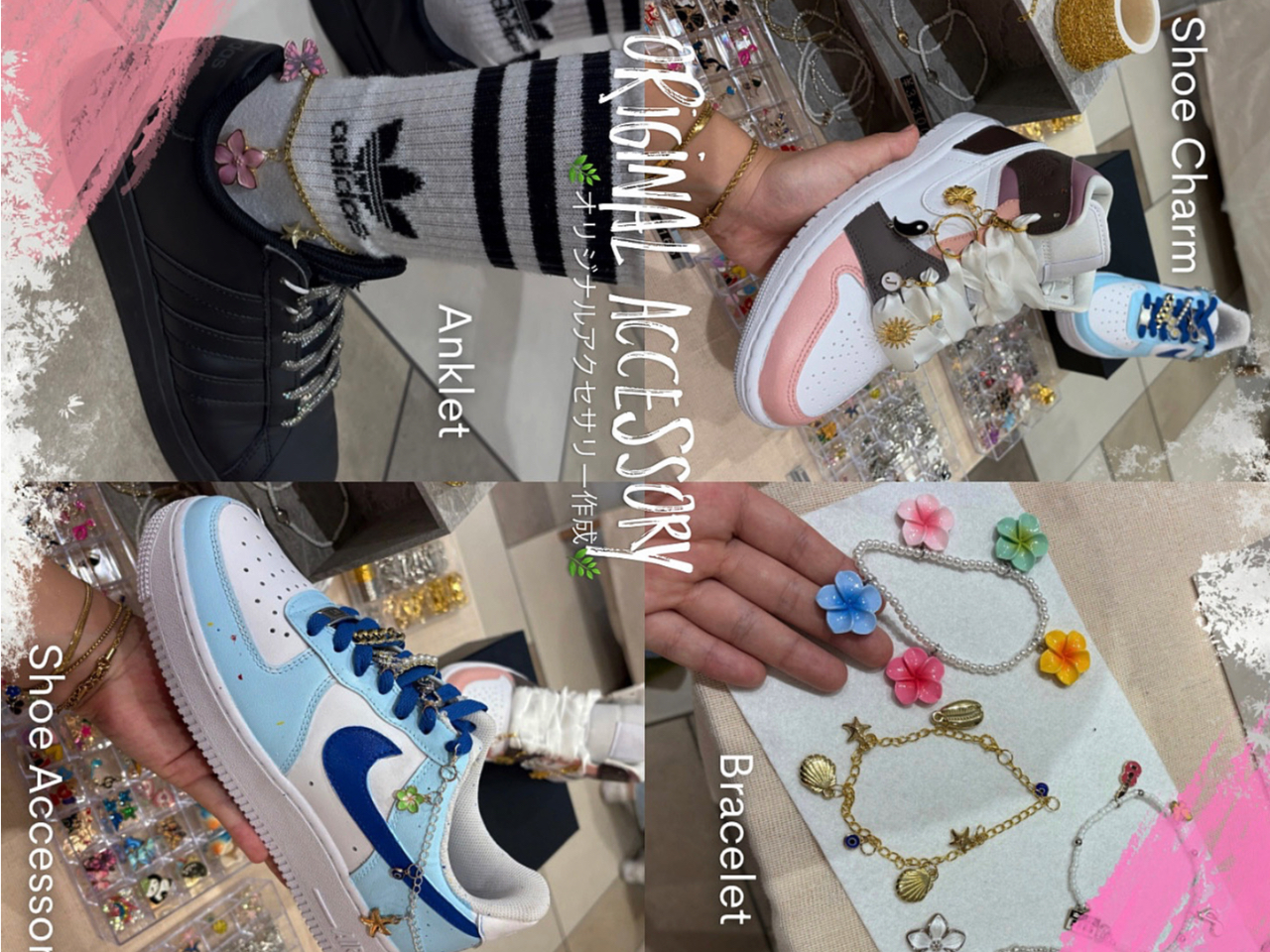 チャームやビーズを組み合わせて、自分だけのオリジナルアイテムを作れます。