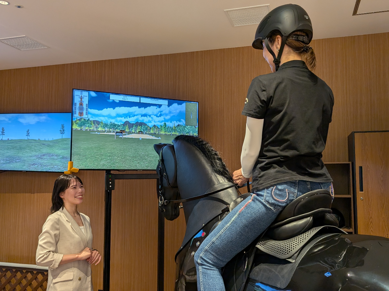 世界最先端の乗馬シミュレーターを使用し、CG画面と連動した臨場感あふれる本格的な乗馬をお楽しみ頂けます。
